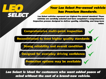 This vehicle has been inspected, reconditioned, and confirmed front-line ready by Leo Auto Group. Leo Select vehicles meet our highest internal standard for used inventory — gone through, retail-ready, and priced to market. When we put the Leo name on it, we mean it.